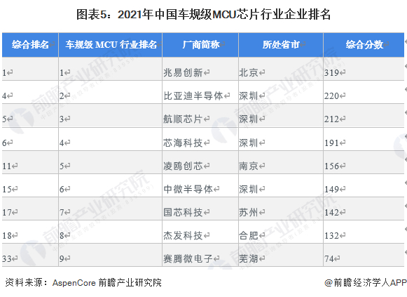 2022年中国车规级MCU行业市场竞争格局分析 兆易创新综合实力排名指数最高【组图】