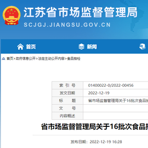 江苏省市场监督管理局发布泡菜、餐具等32批次餐饮食品抽检合格信息