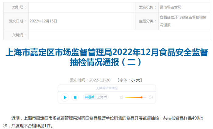 中国质量新闻网讯 近期,上海市嘉定区市场监督管理局对该区食品经营单位销售的食品开展监督抽检,共抽检食品样品490批次。其中抽检保健食品50批次,合格样品50批次。