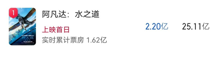 按导演卡梅隆的话来说,判断《阿凡达:水之道》市场是否成功,不能只看首周末票房,到第三周就知道了。