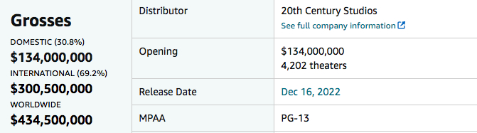 按照“一部电影想要回本需要取得三倍成本收益”的电影行业惯例,阿凡达票房至少要达到20亿美金,才能做到盈亏平衡。若最后无法达到,那迪士尼很难收回投资,这让美国AMC和IMAX等影院来说,也是难以接受的。