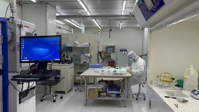 几十米外的焜腾红外百级、千级净化车间内,几十位研发人员正穿着一身纯白色工作服,戴着工作帽、手套和口罩,在各自的工作岗位上忙碌着。他们有的在做光刻、倒装焊,有的在为芯片进行低温真空封装,细致又娴熟,十分专业。