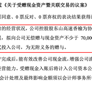 新任控股股东无偿捐赠7亿现金