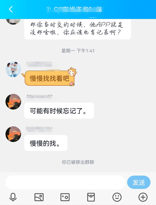多次提问让管理员意识到记者可能是个“刺头”,很快就将记者踢出了QQ群。