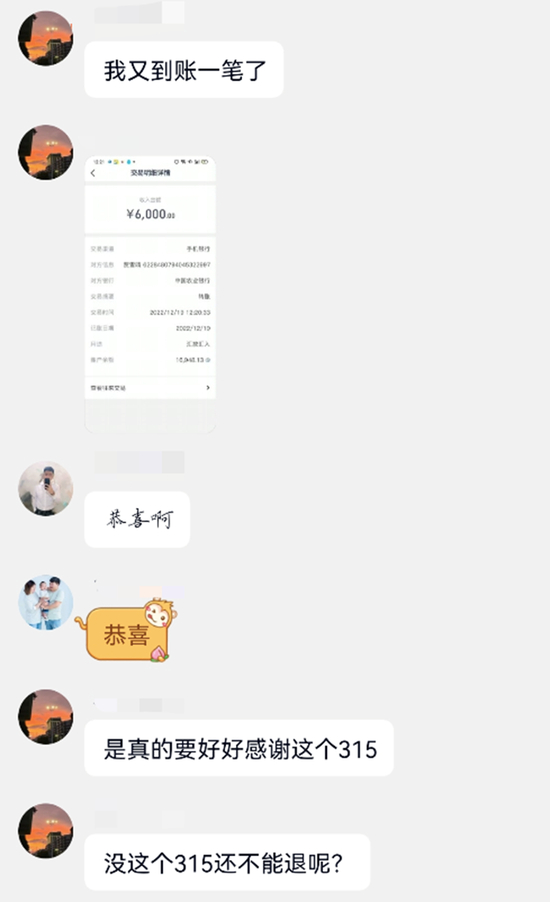 在一个仅有20人的QQ群,记者刚一进入,群里已经聊得热火朝天。有人分享自己的受骗经历,有人分享退费成功的经验,还有人热心地教记者操作方法。