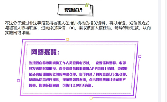 虽然大多数学员能够识别此类信息真假,但难以避免有人上当。多地警方此前已经发布提示,揭露此类骗局的套路。
