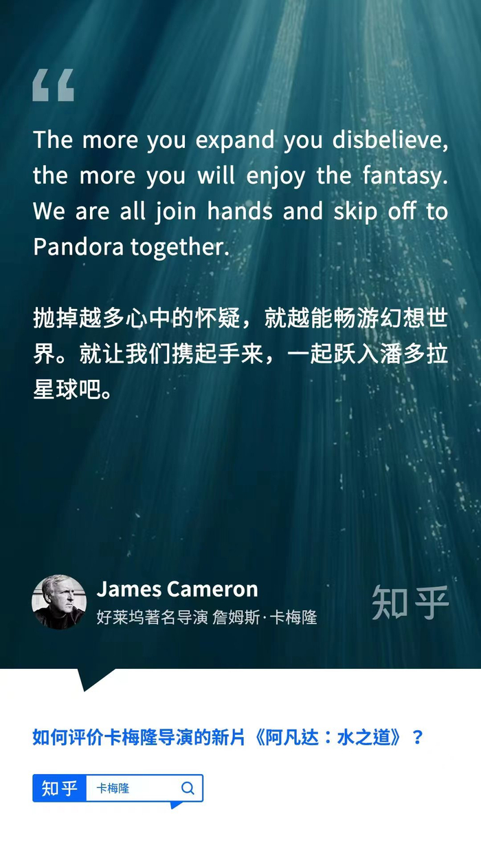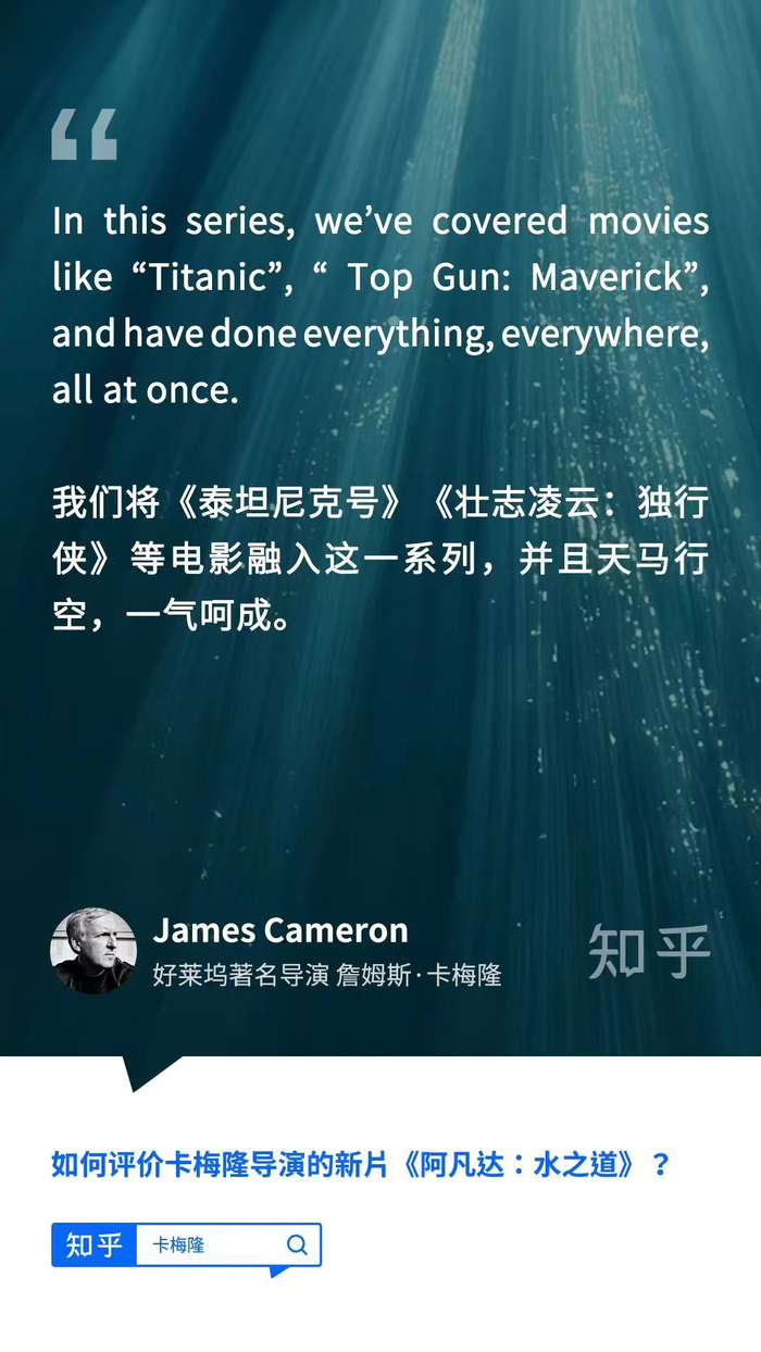 导演卡梅隆在知乎亲自答:《阿凡达2》是一封写给家人的情书