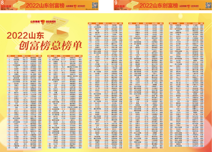 2022山东创富榜正式发布 300位企业家创富1.75万亿