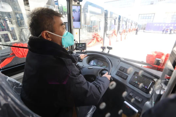 和我市以往的公交车相比,此次新投放的氢燃料电池公交车还融入了多项人性化的便民设计。全车采用一级踏步设计并配备了无障碍设施,可极大方便乘客上下车,进一步提升市民乘车舒适度。此外,氢燃料电池公交车在智能化方面也进行了升级,车辆的驾驶和乘坐都更为舒适。车辆采用前向驾驶辅助、变道和泊车辅助、360度环视预警等智能化系统,实现对驾驶盲区、车道偏离、危险气体和疲劳驾驶行为的实时监测,切实有效保障行车安全,为市民提供安全优质出行服务。