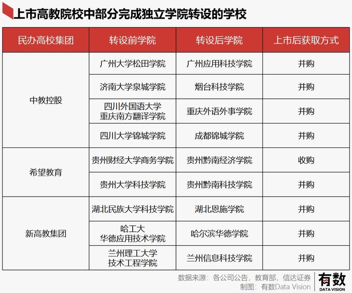 3、高教集团并购整合独立院校。