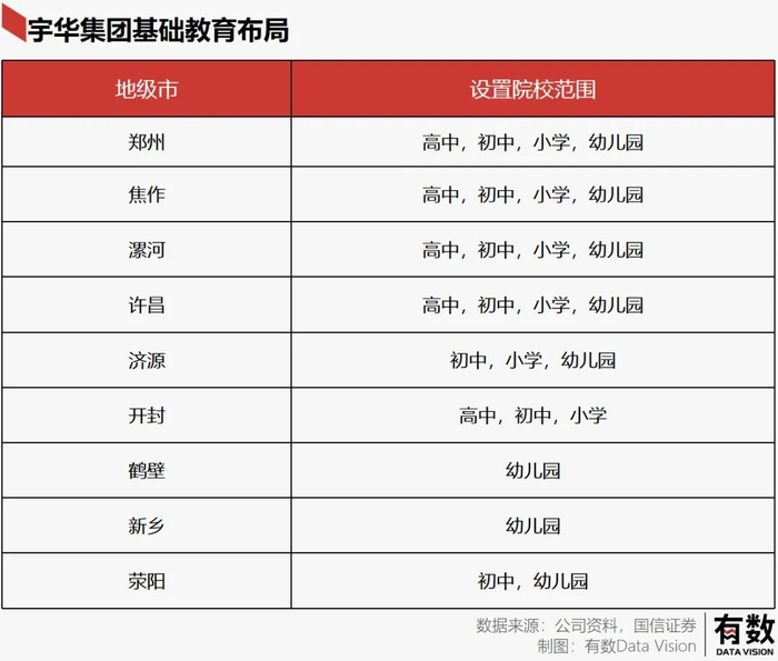 又例如总部位于河南省的宇华教育,除了郑州工商学院之外,在省内各个城市均有部署。
