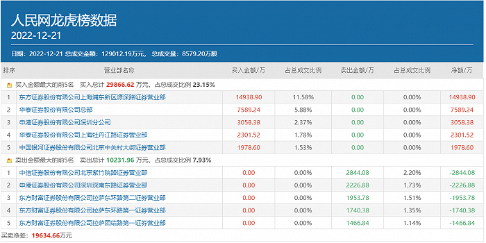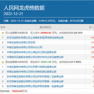 不过,人民网短期内的涨幅确实已经不小了,界面新闻注意到,12月21日也有部分资金已经在流出该股,其中知名游资常用席位中信证券北京紫竹院路以及申港证券深圳深南东路包揽该股卖方前两位,分别卖出2844.08万元和2226.88万元。
