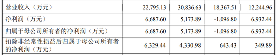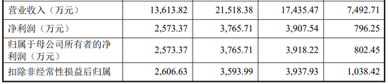 2019年、2020年、2021年及2022年1-3月,公司营业收入分别为1.25亿元、2.38亿元、3.86亿元及1.08亿元。扣非归母净利润分别为568.33万元、3996.41万元、6614.20万元及995.58万元。