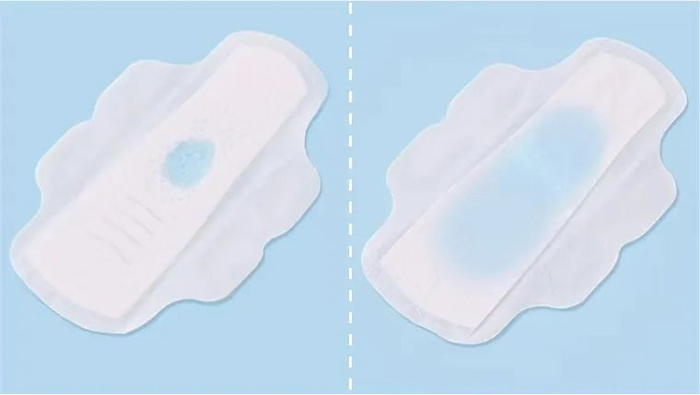意思就是它将大部分经血吸收后渗入到底层,如此一来,表层的经血量相对就少了很多,粘腻感锐减,卫生巾表面一干爽,月经期间的舒适度蹭蹭往上涨,妙啊。