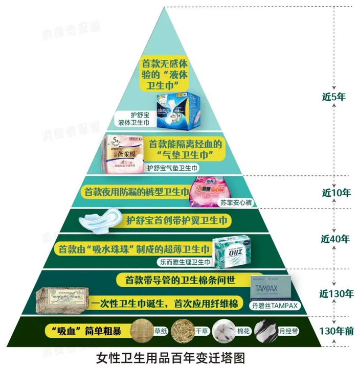 纵观女性卫生用品的发展,这些产品从无到有,从厚到薄,从外用到内置,从单边到全包……每一次变革,都是我们追寻经期解放的里程碑。