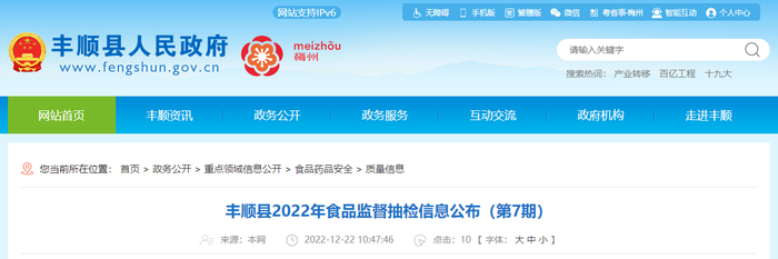 广东省丰顺县市场监督管理局公布2022年第7期食品监督抽检信息