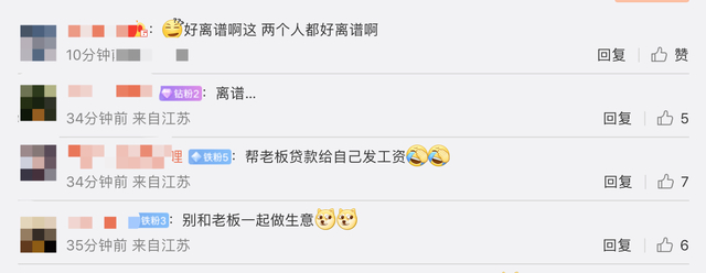 对此,网友表示“离谱,这两个人都很离谱”、“帮老板贷款给自己发工资”,还有网友提醒“别和老板一起做生意”。