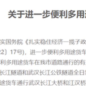 多用途货车在武汉道路的通行规定调整如下: