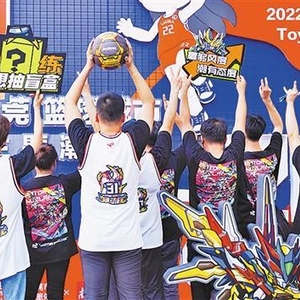 2022东莞篮球城市文化节上,摩动核潮玩机甲系列与篮球文化结合,吸引了许多年轻人。 本报记者 郑 杨摄