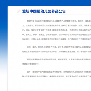 此外,雅培的跨境电子商务平台将不受影响及继续营运,其他在中国的业务包括诊断、医疗器械和药品等领域亦不受影响。至于位于嘉兴的工厂,仍然是雅培全球医学营养品和婴幼儿配方产品生产供应网络的重要组成,其营运同样不受影响。