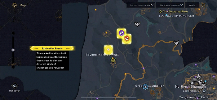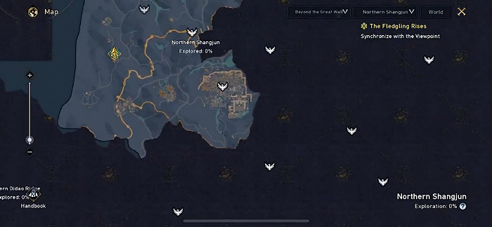 大地图目前可以看到5到6块大区域,每块大区域会有小区域的细分,并标注了探索度,从目前已经解锁的图标来看,探索方面大部分都是“熟悉的配方”,比如鸟点,野兽等。
