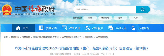 中国质量新闻网讯 12月21日,广东省珠海市市场监管局发布2022年食品监督抽检(生产、经营和餐饮环节)通告(第10期),涉及23批次饮料抽检合格信息。