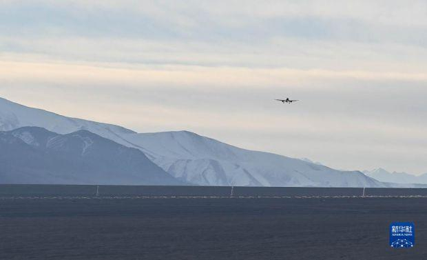 12月23日,飞机即将降落在塔什库尔干红其拉甫机场。12月23日10时59分,一架自乌鲁木齐起飞的CZ5193次航班平稳降落在塔什库尔干红其拉甫机场,雪域高原帕米尔迎来首批“空中来客”。这标志着新疆首座高高原机场正式通航。为改善高原各族群众交通条件,2020年,作为国家“十三五”规划重点建设项目,投资超过16亿元的塔什库尔干机场启动建设。机场开通后,预计可满足年旅客吞吐量16万人次、货邮吞吐量400吨。新华社记者 李响 摄