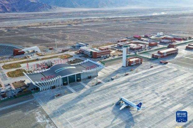 12月23日拍摄的塔什库尔干机场。12月23日10时59分,一架自乌鲁木齐起飞的CZ5193次航班平稳降落在塔什库尔干红其拉甫机场,雪域高原帕米尔迎来首批“空中来客”。这标志着新疆首座高高原机场正式通航。为改善高原各族群众交通条件,2020年,作为国家“十三五”规划重点建设项目,投资超过16亿元的塔什库尔干机场启动建设。机场开通后,预计可满足年旅客吞吐量16万人次、货邮吞吐量400吨。新华社记者 李响 摄