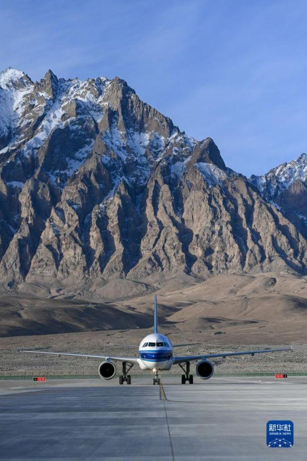 12月23日,首航航班降落在塔什库尔干红其拉甫机场。12月23日10时59分,一架自乌鲁木齐起飞的CZ5193次航班平稳降落在塔什库尔干红其拉甫机场,雪域高原帕米尔迎来首批“空中来客”。这标志着新疆首座高高原机场正式通航。为改善高原各族群众交通条件,2020年,作为国家“十三五”规划重点建设项目,投资超过16亿元的塔什库尔干机场启动建设。机场开通后,预计可满足年旅客吞吐量16万人次、货邮吞吐量400吨。新华社记者 丁磊 摄