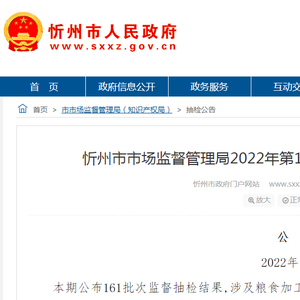 山西省忻州市市场监管局抽检食品161批次 不合格4批次