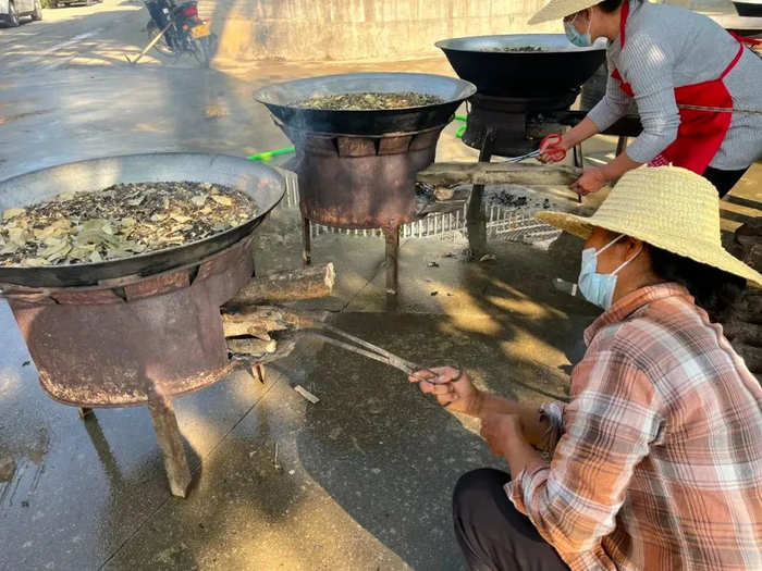 “为了提高广大群众的免疫力,我们村小组干部就商量着煮点大锅药给寨子的村民喝,寨子里的双医生听说后,就主动提出免费提供大锅药。大家都很感谢他,一早我们村组干部就约着来帮忙了。”风平镇芒赛村团结小组组长腾岩上所一边忙着往灶里塞柴火,一边说。