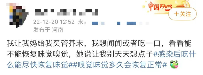 近日,在各大社交媒体平台上有网友反映感染康复后出现味觉、嗅觉减退的症状