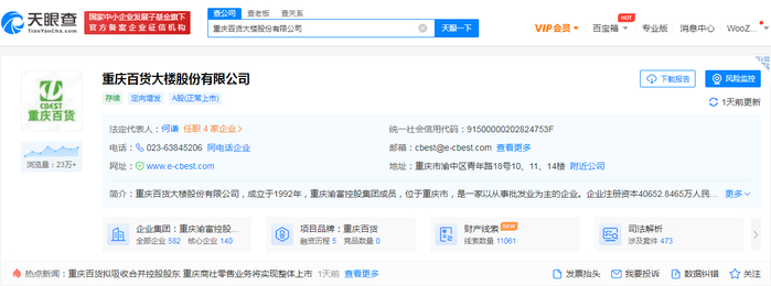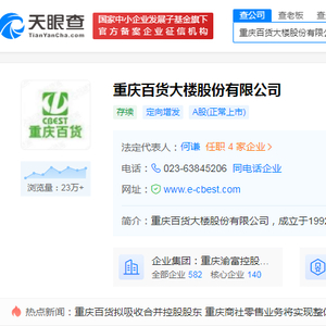 天眼查信息显示,重庆百货主要从事百货、超市、电器和汽贸等业务,拥有“重庆百货”、“新世纪百货”、“商社电器”和“商社汽贸”等著名商业品牌。其中,“重庆百货”与“新世纪百货”为中国驰名商标,公司四大品牌在重庆市当地具有较高的知名度和美誉度,受到广大消费者的喜爱和信赖,具备较强的品牌优势。