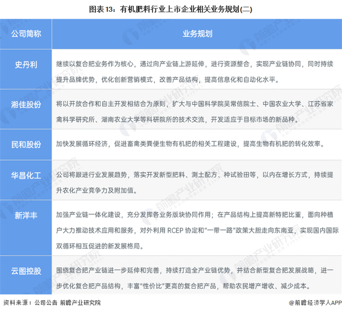 本文核心数据:有机肥料上市企业汇总;有机肥料行业上市企业业务占比;有机肥料上市企业发展规划