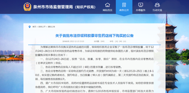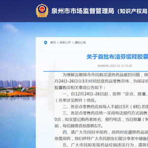 为缓解近期我市市民购买退热药品难的问题,我局组织医药企业采购了一批布洛芬缓释胶囊,将于12月24日-26日分3天时间投放药品零售市场,为保证将有限的药物提供给急需的人群,现对该批布洛芬缓释胶囊购买相关事项公告如下: