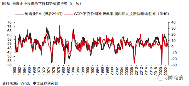劳动力市场、服务业是美国经济最后的稻草,美国经济较快恶化最早或发生于明年一季度,也支撑美联储明年一季度停止加息的判断。当前美国房地产市场已快速步入衰退,仍在快速下行;商品消费已出现疲软迹象;利率快速上升、需求下降的背景下,投资信心大幅下滑,企业投资也出现趋势性下降。目前美国经济难言已步入衰退主要由于劳动力市场处于增长放缓但仍偏强劲,服务消费仍存在一定韧性,服务业PMI仍处于较高景气度。但未来随着美联储紧缩寒风逐渐更深层吹入美国经济,美国经济较快恶化最早或发生在明年一季度,因而从该角度而言,美联储停止加息时点也是较大概率发生于明年一季度。