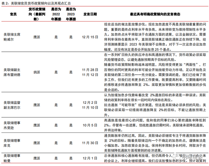 本文节选自中信证券研究部已于2022年12月26日发布《债市启明系列20221226—2023年更鸽派的美联储票委意味什么?》,具体分析内容(包括相关风险提示等)请详见报告。若因对报告的摘编而产生歧义,应以报告发布当日的完整内容为准。