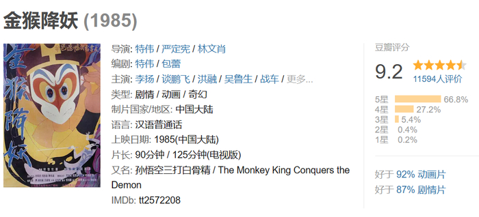 动画师们在细节之处的独到描绘,加上传统戏剧文化的加持,使美猴王在动作神态的表现上融合了中国古典戏剧表演中人神猴的三种特性,呈现出了既保留中国传统视觉体验又带有极致想象力的世界级的动画表演。
