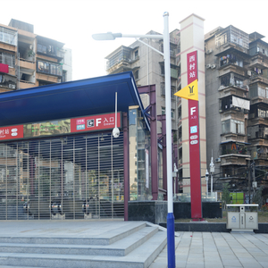 西村站目前通行五号线,共开放A、B、C、D四个出入口,随着八号线的开通,车站将新增开放E、F、G出入口供使用。