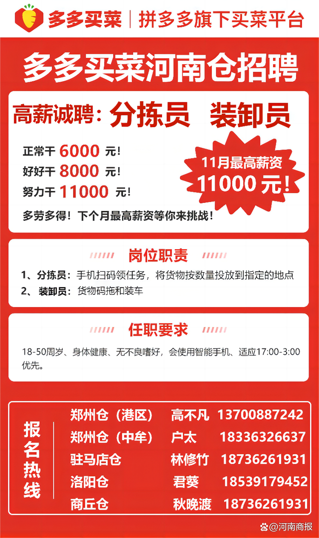 上百个用工岗位!河南多多买菜面向全省招聘啦