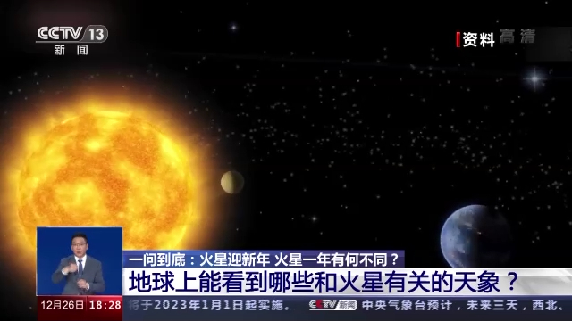 中科院紫金山天文台科普主管 王科超:今天是火星的春分,火星上还有其他标志性节气,如夏至、秋分、冬至,意味着火星在轨道上与春分时相距90度、180度、270度。由于距离太阳较远,火星的轨道周期比较长,每个季节将近6个月,各个季节也不均匀。其中,火星北半球春夏季要比秋冬季长大约三分之一。