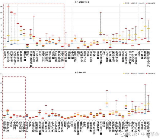 分行业看,少于半数行业PE估值水平高于过去5年估值中位数,少数行业PB估值水平高于过去5年估值中位数,社会服务、房地产等行业估值较高。