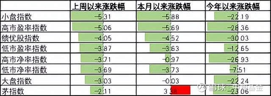 上周A股各风格指数中,大盘指数及茅指数分别跌3.03%及2.11%,表现最好;高PE及小盘指数分别跌5.06%及5.31%,表现最差。上周市场大盘风格占优。