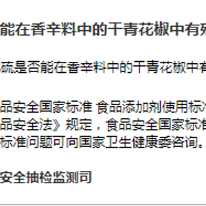 二氧化硫是否能在香辛料中的干青花椒中有残留?市场监管总局回复