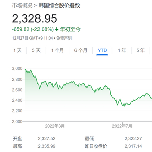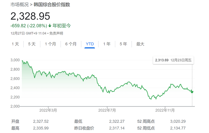 2008年来最差表现!韩股今年累跌超22% 成长股为最大拖累