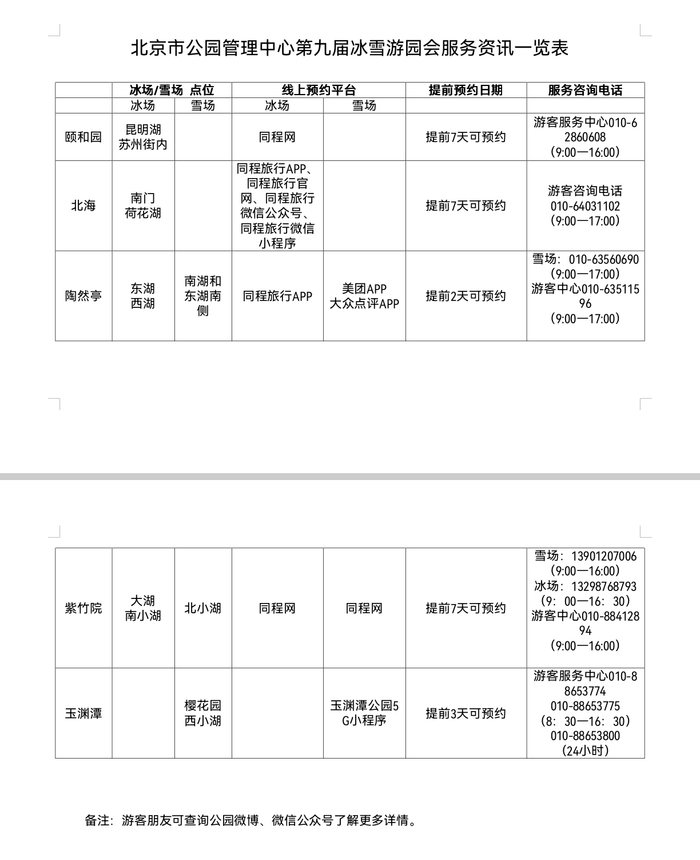 为确保市民游客安全有序地感受冰雪活动,提高体验感,今年5家公园的活动场地可提前2-7天进行网上预约购票,按预约时段轻松入场,不必在现场排队购票。