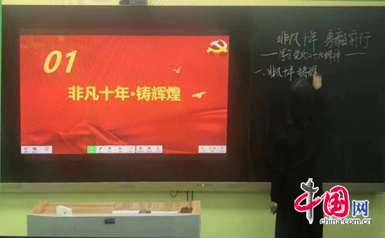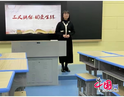 比赛分为两个环节,第一环节为5分钟的“教学故事演讲”。谌烨老师此次演讲的题目是《三尺讲台 因爱生辉》,她深情并茂地讲述着她与学生之间爱的故事,也更坚定了她继续把这份爱播撒到未来岁月中的决心。第二环节为15分钟的“无生课堂上课”。谌烨老师围绕着主题《非凡十年 勇毅前行》,课堂环环相扣,深入浅出。