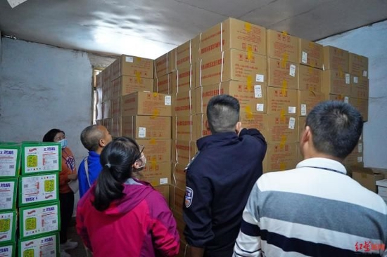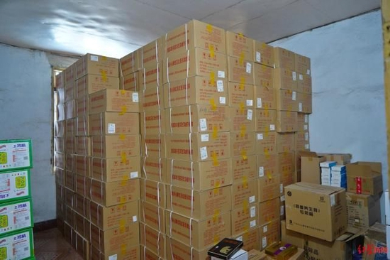 “打开仓库,我们(办案人员)都大吃一惊。”办案民警回忆,在面积约200平方米的仓库里,密密麻麻地堆放着各类保健品和保健器材。经现场清点,有熊胆粉、红景天等保健品、保健器材55类,共计5000余件;现场挡获嫌疑人翟某某、杨某某二人。