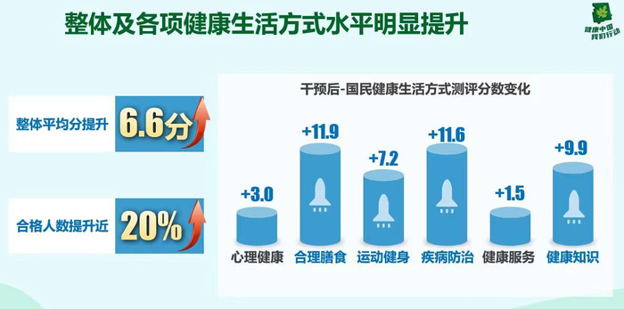 基于线上组队、线下行动的“组团健康”,参与者在健康生活方式的六个维度上有显著改善。对比干预前后(学习前后)的测评分数,合理膳食、疾病防治、健康知识、运动健身方面的得分,分别提高11.9分、11.6分、9.9分、7.2分;参与者膳食搭配多样性与膳食技能明显提升,运动健身行动力显著增强;心理健康问题关注度加强。