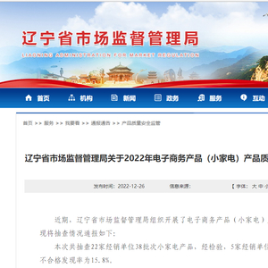 辽宁省市场监督管理局通报2022年电子商务产品(小家电)产品质量监督抽查情况